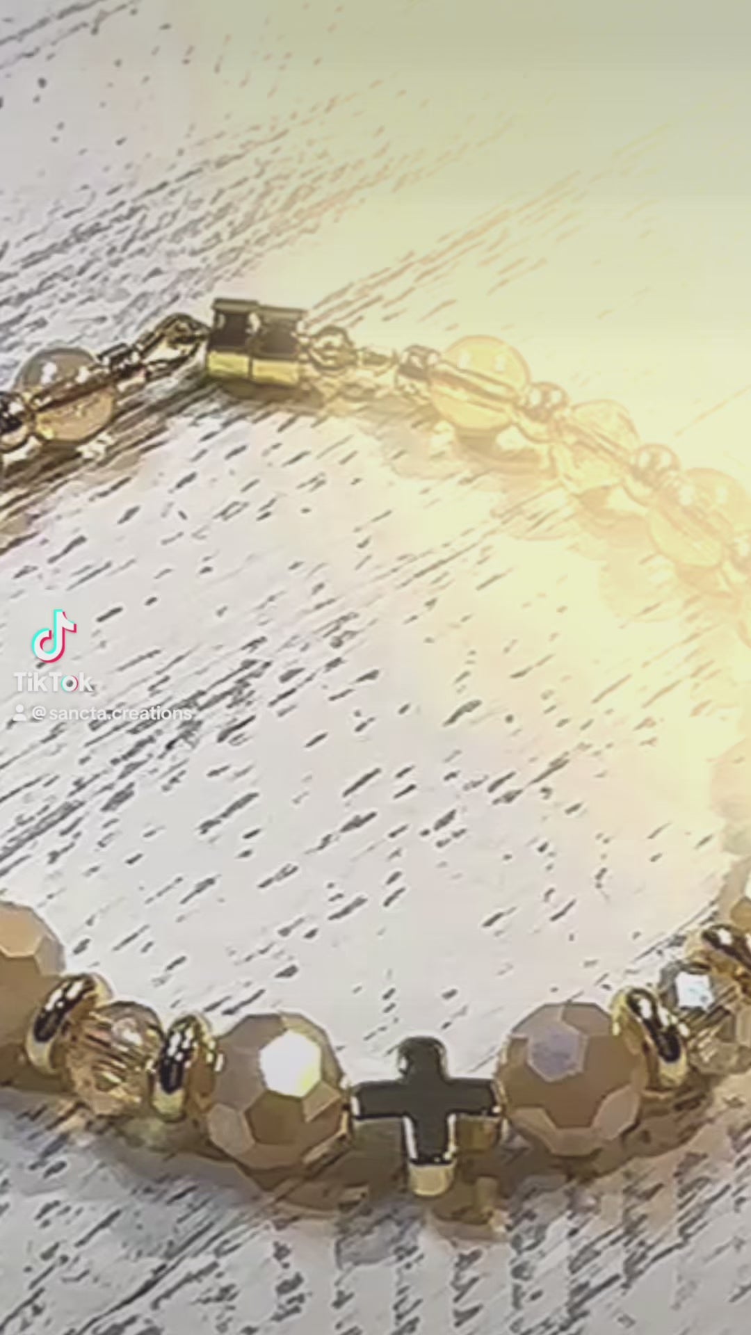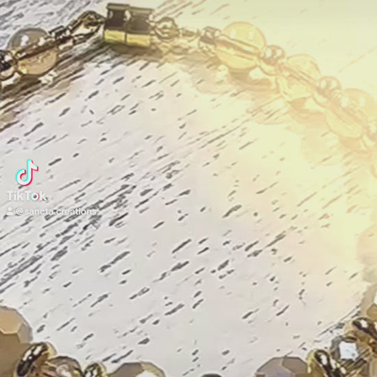 The Radiant Grace Bracelet glows with warmth and devotion. Handcrafted with a blend of 4mm and 6mm amber crystal and faceted beads, each one captures the gentle light of faith and radiates the beauty of divine grace. Accented with a gold cross and polished gold spacers, this bracelet reflects timeless elegance. The secure magnetic clasp allows for effortless wear, making it both graceful and practical.